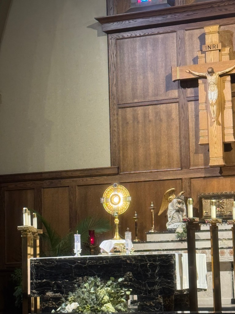 As I sit in my Father’s house and look at Him face to face in the Eucharist, my thoughts turn to my earthly father. Psalm 27 rises in my heart: “The Lord is my light and my salvation—whom should I fear?” In this sacred place, I see how much fear the Lord has gently taken from me—fear I carried since childhood. Fear that kept me awake at night. Fear that held me back from becoming who God created me to be.